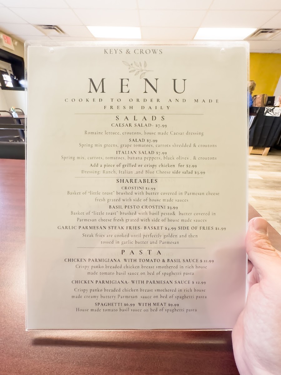 What truly sets Keys and Crows apart is the welcoming atmosphere cultivated by its passionate owner and friendly staff, making diners feel like family. Whether you're savoring a classic Chicken Parmesan or tasting one of their house-made sauces, each dish is a testament to the love and dedication that defines this delightful eatery. Visit to experience quality and warmth in every bite.